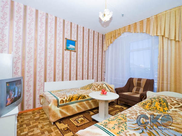 - 2-х местный стандартный номер (15м2): ванная, санузел, кондиционер, холодильник, телевизор.