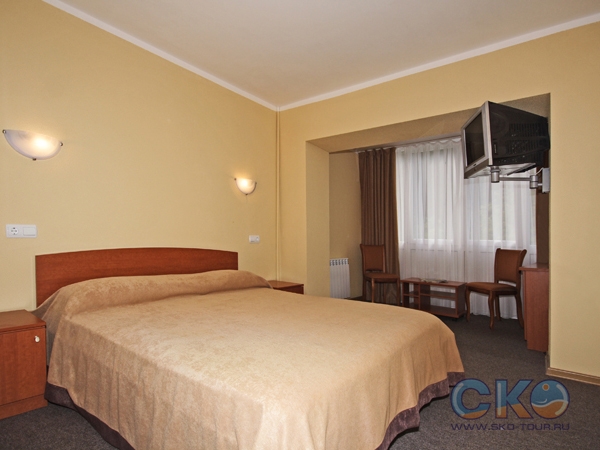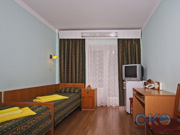 Все номера отделаны в современном стиле. К вашим услугам однокомнатные 2х-местные номера с лоджией, двухкомнатные номера люкс оборудованные кондиционерами. Все номера оборудованы телевизорами, холодильниками, радио. Санаторий оснащен своим телецентром с пакетом цифрового спутникового телевидения. Кроме того он располагает плавательным бассейном с подогреваемой пресной водой в осенне-зимний период, спорткомплексом, гаревым полем, прекрасно оборудованным пляжем, замечательным киноконцертным залом, в котором регулярно проводятся концерты, семинары, конференции.