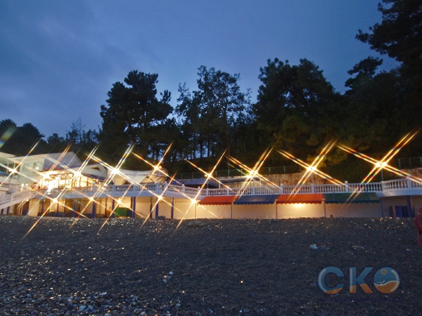 Если вам больше по душе провести теплый южный вечер на свежем воздухе, то к вашим услугам уютное летнее кафе на самом берегу моря. Любуясь лунной дорожкой и огнями вечернего Сочи, вы можете заказать сочный шашлык, различные блюда из морепродуктов, горячительные и прохладительные напитки.