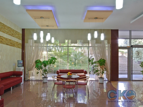 Помимо прочего, можно воспользоваться камерой хранения, посетить сауну, заказать билеты на обратную дорогу, приобрести необходимые курортные товары и отправить поздравительную телеграмму - все это не выходя из здания санатория.