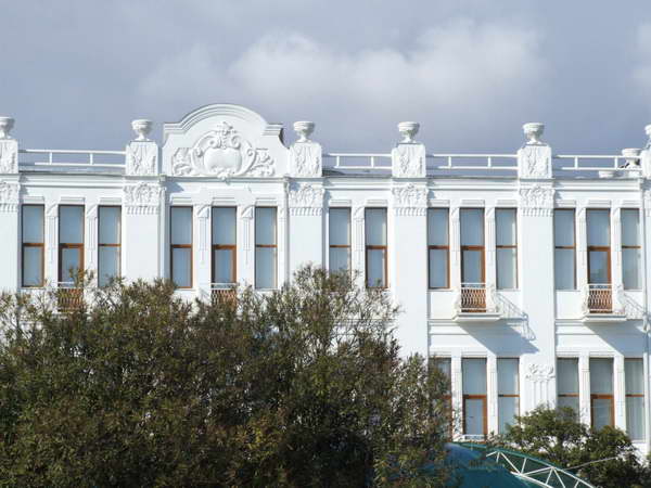 Сухум с его богатой субтропической природой, яркой зеленью, насыщенными оттенками моря стал прекрасным фоном для белоснежного здания, элегантно возвышающегося фасадом к морю. Венчает угловую часть постройки красивый купол, стены украшены узорчатыми барельефами. Появившись в далеком 1914 году, здание гостиницы на протяжении столетия остается одним из символов Сухума.defaul3t