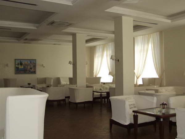 На первом этаже отеля расположены стойка администратора, интернет кафе и кафе - кондитерская «Медовик», европейский ресторан «Сан - Ремо» и ресторан национальной кухни «Акьяфурта».