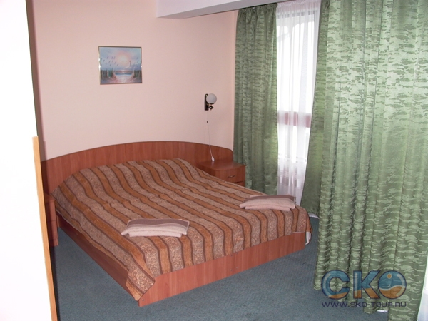 Стандарт кат. С (2 номера): 1 комнатный номер с двуспальной кроватью, прикроватными тумбочками, раскладным диваном, шкафом, телевизором, холодильником, кондиционером, электрическим чайником, чайным набором. Санузел совмещенный (душевая кабина, туалет, умывальник, сушка, фен). Возможно размещение до 3-х человек. Номера с балконом с видом на горы. Площадь номера до 26 м.кв.