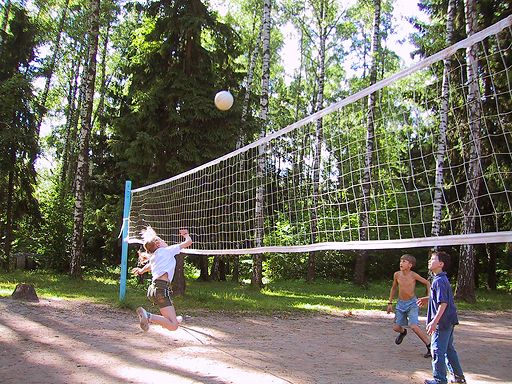 В лагере есть все условия для поддержания отличной физической формы! На территории лагеря расположены три футбольных поля: большое, среднее и малое. Поиграть в баскетбол и волейбол также можно на открытых специализированных площадках. В плохую погоду игры и тренировки можно проводить в большом спортивном зале.