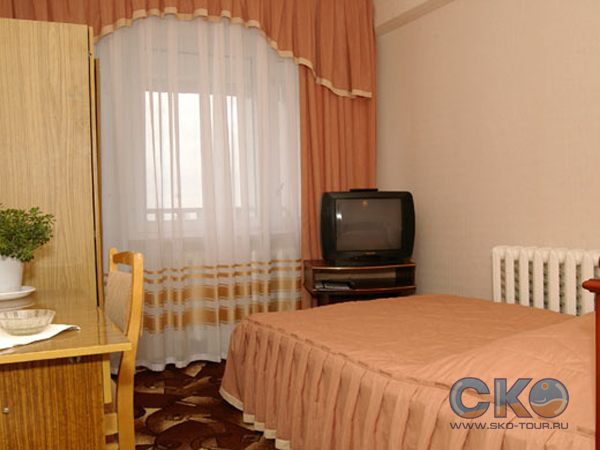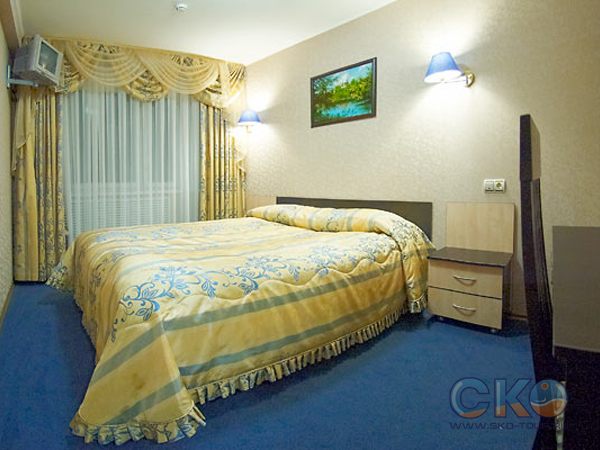 Комната: двуспальная кровать или две раздельные кровати, тумбочки, шкаф, стол-тумба с телевизором, мини-бар (за отдельную плату), телефон. Ковровое покрытие