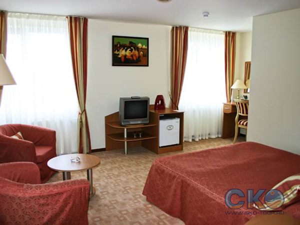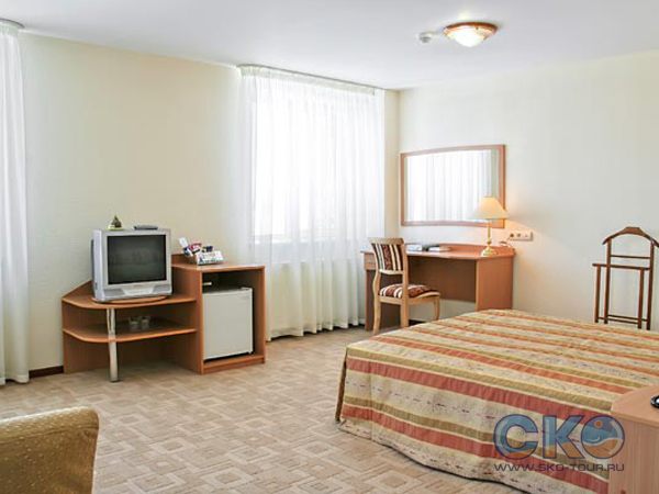 Просторный однокомнатный номер (28м кв.) с двумя раздельными кроватями. В номере: ванна/душевая кабина, холодильник (минибар), спутниковое телевидение (14 каналов), международная и междугородняя связь, беспроводной доступ в Интернет. - Стандарт плюс