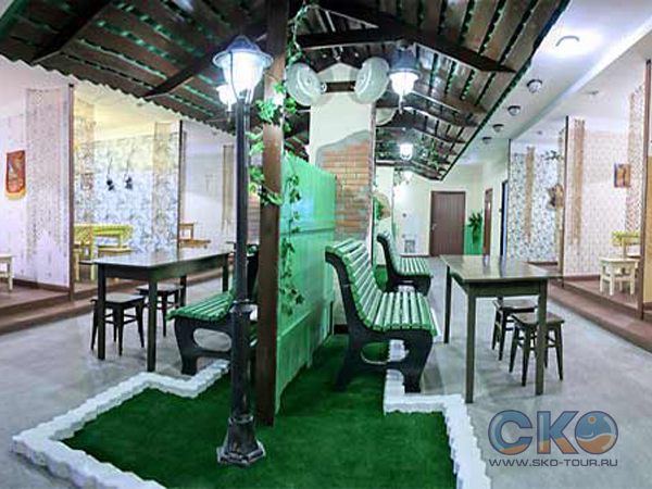 Наши гости могут получить удовольствие, посетив ресторанный комплекс нашего развлекательного центра, состоящий из четырех тематических зон: "Русское раздолье", "Украинский хуторок", "Восточный шатер", "Пивной ресторан".