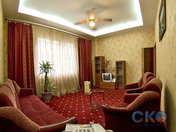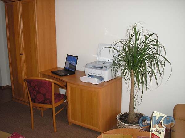 Комната: семейная кровать, мягкая мебель, шкаф, стол, компьютер, телефон, телевизор, мини-бар (за доп. плату), кондиционер.