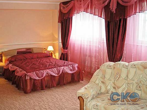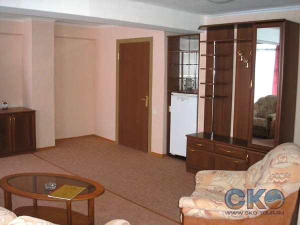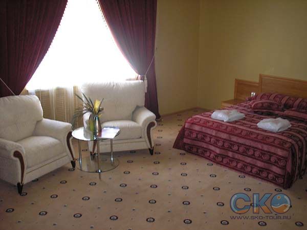 Комната: семейная кровать, мягкая мебель, телевизор, телефон, холодильник, сейф.