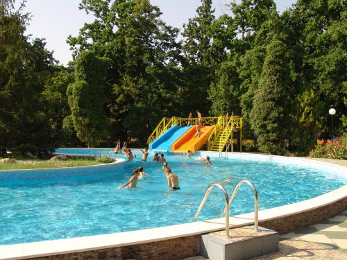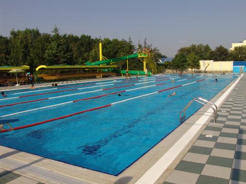 Отель располагает единственным на юго-западном побережье Республики Крым профессиональным 50-метровым подогреваемым плавательным бассейном (6 дорожек). Рядом с ним расположен детский бассейн с элементами аквапарка. Вообще же для детей здесь построена настоящая сказочная страна с детскими игровыми площадками, батутами, игровыми автоматами, загадочными фонтанами и бассейнами с водными горками.