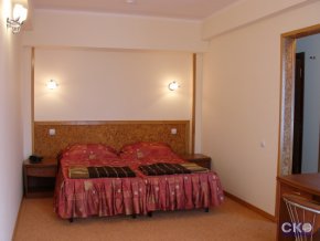 - 2-х местный 2-х комнатный семейный номер: площадь 29 кв.м., гостиная и спальня, санузел, душ, два телевизора со спутниковыми каналами, балкон с видом на море, два кондиционера; в спальне две отдельные кровати, прикроватные тумбочки, кресло-кровать, туалетный столик, светильники, телефон; в гостиной диван, столик, журнальный стол, мини-холодильник.