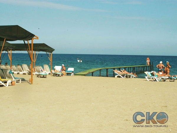 Собственный песчано-галечный пляж на территории общественного пляжа, в 100 м от отеля.