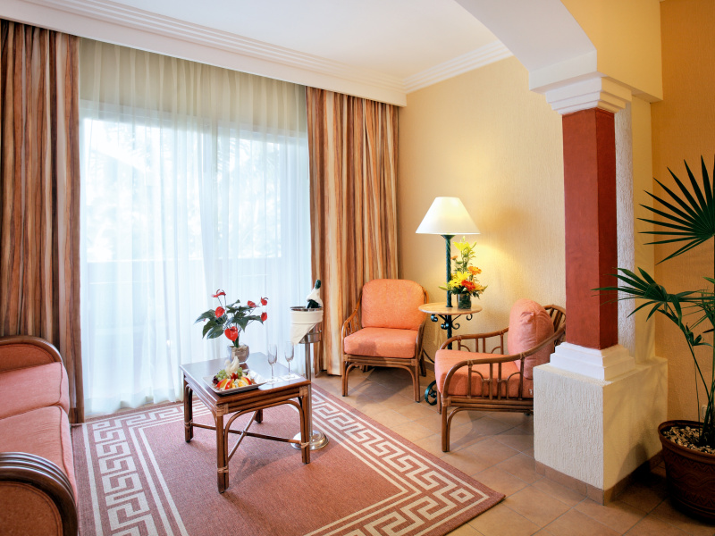 • 8 Suite Ocean Front Club Premium (спальня с кроватью king, ванная и отдельный санузел, гостиная с зоной столовой, 2 дивана-кровати, терраса с шезлонгами, привилегии Club Premium, макс. 3 чел..; в части Maya Colonial и Maya Tropical),