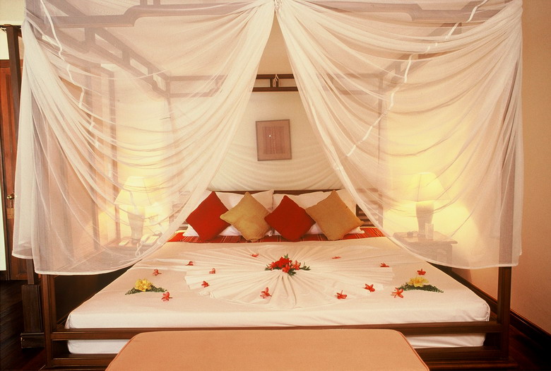 Deluxe beachfront villa (45 кв. м): терраса, спальня с кроватью “king-size” или двумя отдельными кроватями, ванная комната с джакузи и душем с функцией «тропический дождь». Прямой выход к пляжу. Вид на сад.