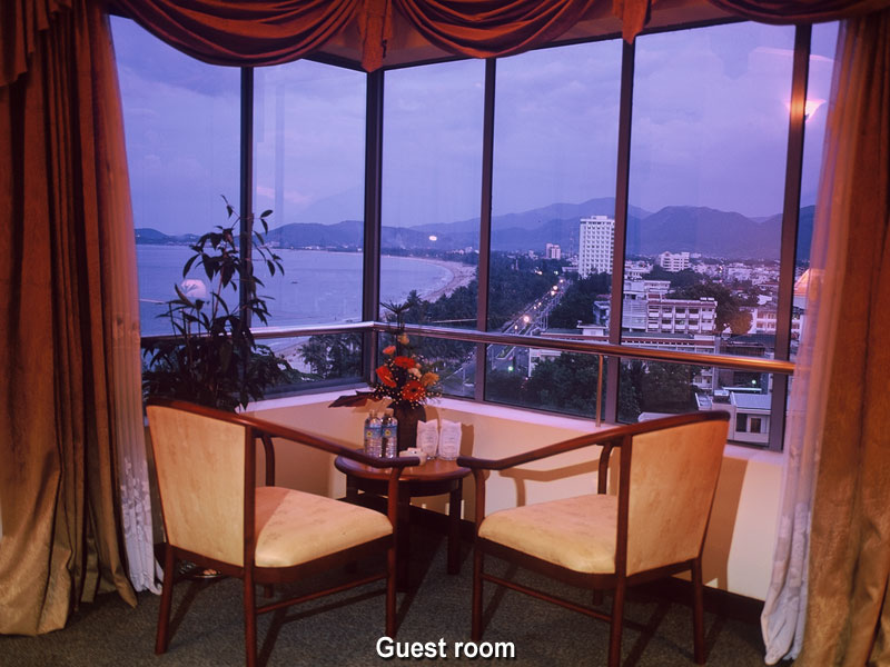 - Royal suite- комфортабельный номер площадью 150 кв. м., расположенный на верхнем этаже отеля, откуда открывается захватывающий вид на залив Нячанг. В номере: гостиная, роскошная столовая и кухней, две спальни и просторная ванная комната с сауной