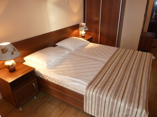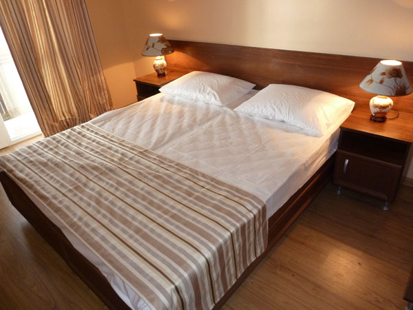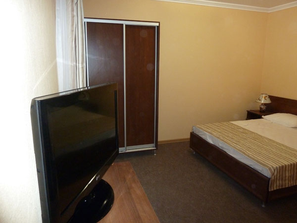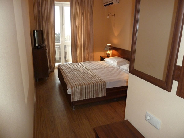 - Улучшенный 2-местный. В номере: двуспальная или две односпальные кровати, диван, тумбочки, шкаф, телевизор, холодильник, кондиционер, санузел с ванной, комплект полотенец, балкон.