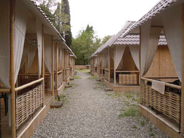 Комплекс парк-отеля Остров в Пицунде состоит из 10 комфортабельных коттеджей из бамбука, расположенных на собственной огороженную территории. В летний зной здесь можно отдохнуть в тени капарисов, прокатиться по озеру на катамаране и отведать настоящей традиционной кухни в ресторане "Остров".