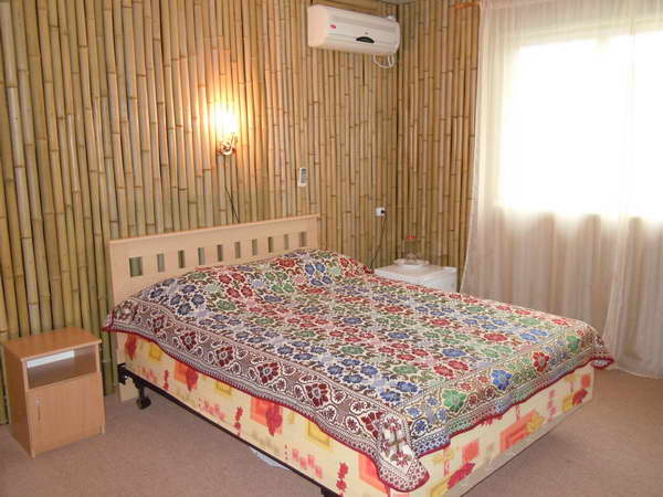 Период функционирования «Острова»: с апреля по ноябрь. Новые коттеджи из бамбука с удобной, простой деревянной мебелью имеют пластиковые окна, площадь 28 кв.м, ковролиновое половое покрытие, кондиционер, холодильник, телевизор, ванную комнату. Модный экологический чистый декор делает простой интерьер необычным и запоминающимся. Одна линия домов выходит окнами на спокойную гладь озера, вторая – на лес. Проживание довольно комфортное: нет шумных соседей, личный вход-выход, разнообразные варианты досуга.