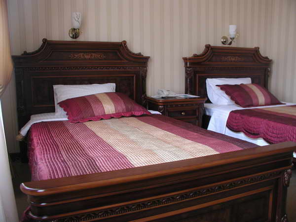 - 2-местный студио "Романтик" и "Восточный" (макс. 2+2 чел., 45 кв. м, телевизор, кондиционер, душ, туалет, фен, холодильник, мини-бар, сейф). Доп. место - еврораскладушка, может быть установлена без ограничения по возрасту.