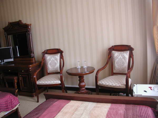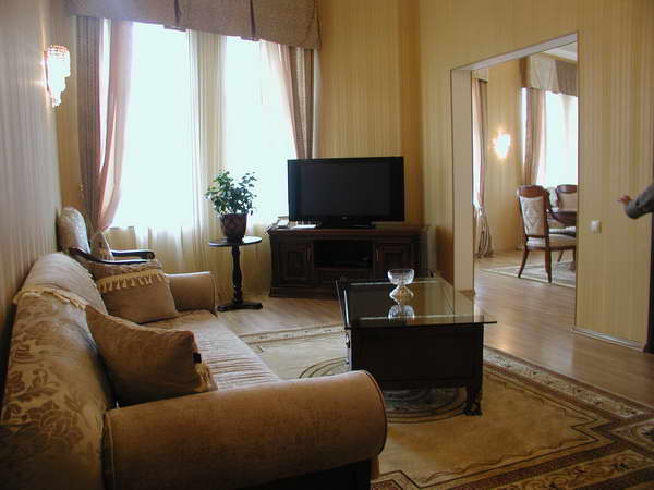 - 2-местный 2-комнатный люкс (макс. 2+1 чел., 70 кв. м, телевизор, кондиционер, душ, туалет, фен, мини-бар, сейф). Доп. место - еврораскладушка, может быть установлена без ограничения по возрасту.