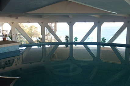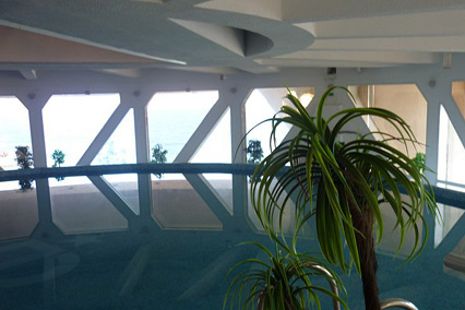 На нижнем уровне здания находится крытый бассейн с морской водой, благодаря его широким окнам создается полная иллюзия моря.