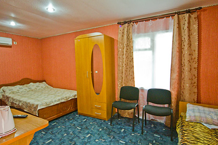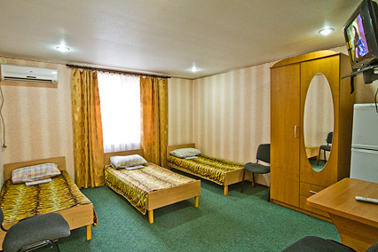 - 2-3-х местные номера, категория 1:душ, умывальник, туалет, телевизор - диагональ 54 см., кондиционер, электрочайник, сейф, 2-х камерный холодильник.