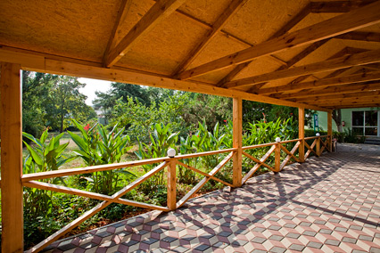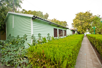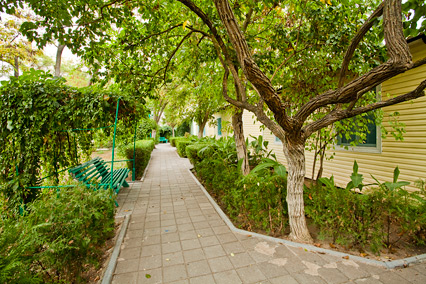 Отличительная особенностью туристического комплекса «Прибой» в Береговом является закрытая от посторонних тенистая территория, со множеством деревьев, цветов. В жаркий день отдыхающие могут спрятаться в тени многочисленных беседок. Здесь не слышно ни шума машин, ни громкой дискотечной музыки.