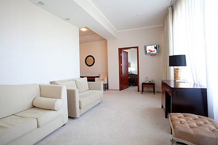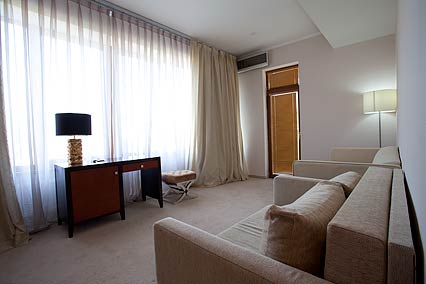- «Апартаменты Люкс» - 16. представляют собой две просторные комнаты, общей площадью 52 кв.м. Гостиная комната привлекает своей практичностью (может послужить также и рабочим кабинетом). В каждой спальне и гостиной предоставлены плазменные телевизоры. В другой комнате есть дополнительно диван. Оснащение номеров: Плазменная панель; Телефон; Электронный сейф; Кондиционер; Фен; Душевая кабина; Халаты и тапочки; Халаты и тапочки; Комплект полотенец; Набор косметики.