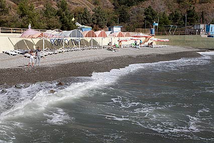 На пляже: ресторан, кальян-бар, маяк, детская площадка с горкой и песочницей, детские бассейный, водные горки, душевые, туалет, пункт выдачи полотенец, стоянка электрокаров.
