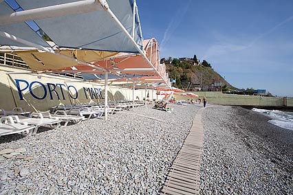 Номера парк-отеля – просторные, отлично обставленные, от стандартной категории до класса «Люкс» и апартаментов. Но Porto-Mare - это не только номера европейского уровня, но и законченный комплекс услуг наивысшего качества для развлечений и досуга. Отель располагает собственным пляжем протяженностью 100 м, расположенным в 200 м от корпусов и оборудованным теневыми навесами, зонтиками, шезлонгами. На пляже работает бар с изысканной кухней, разнообразием коктейлей и большим выбором кальянов. К пляжу можно пройти через городской туннель или доехать на электромобиле отеля.