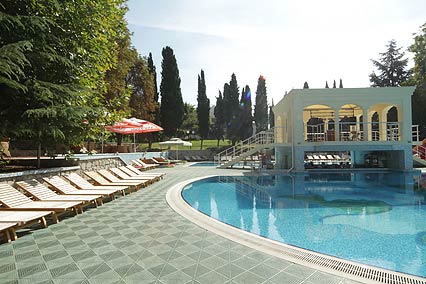 Гостиничные корпуса ПОРТО МАРЕ В АЛУШТЕ, утопая в прохладе большого ухоженного прекрасного старого парка, выделяются своим новым европейским видом.