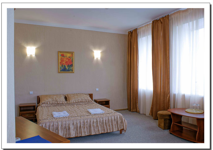 - 2-местный люкс с удобствами (санузел с импортной сантехникой, душ) - современная мебель, кондиционер, холодильник, телевизор, кабельное TV, мини-сейф, электронный замок на входную дверь. Доп. место - раскладной диванчик (возможно размещение 1 человека).