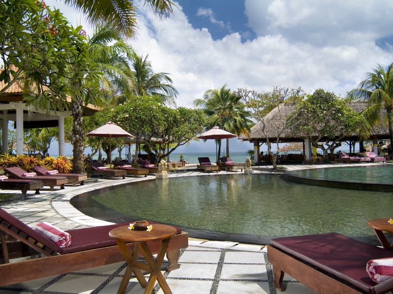 Отель расположен в курортной зоне Джимбаран (Jimbaran Bay), на одном из самых живописных пляжей о. Бали, в 10 минутах езды от международного аэропорта "Ngurah Rai".