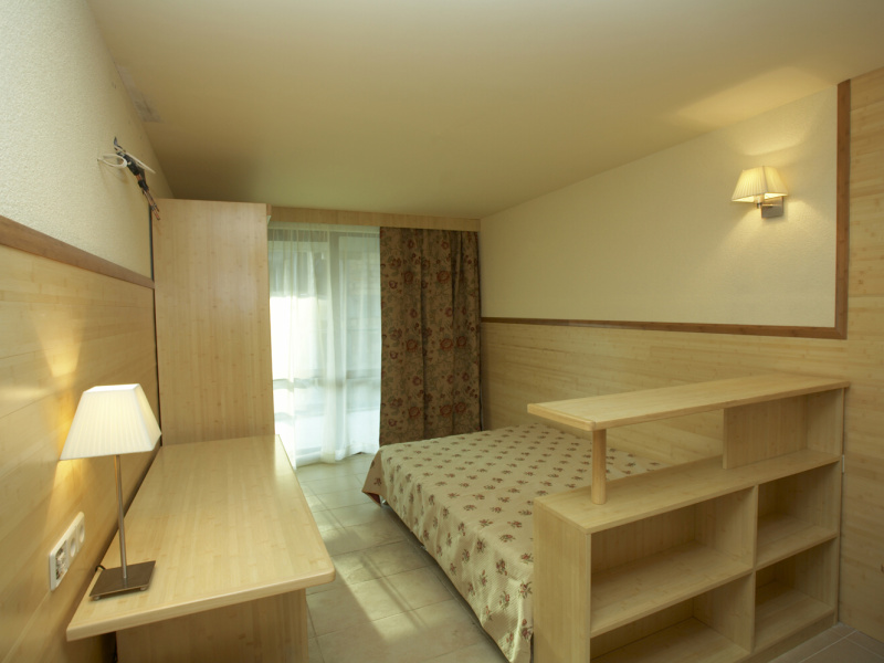 - Studio (50 кв.м.) – двуспальная кровать, кондиционер, TV SAT, телефон, радио, мини-бар/мини-холодильник, сейф, кухонный бокс, доступ в интернет, балкон, ванна/душ, фен.
