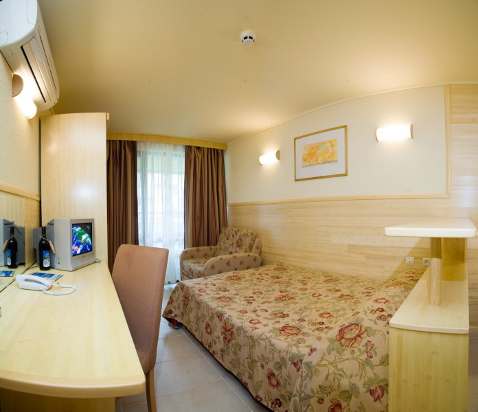 - Dbl (26 кв.м.) – двуспальная кровать, кондиционер, TV SAT, телефон, мини-бар, сейф, доступ в интернет, балкон, душ, фен.
