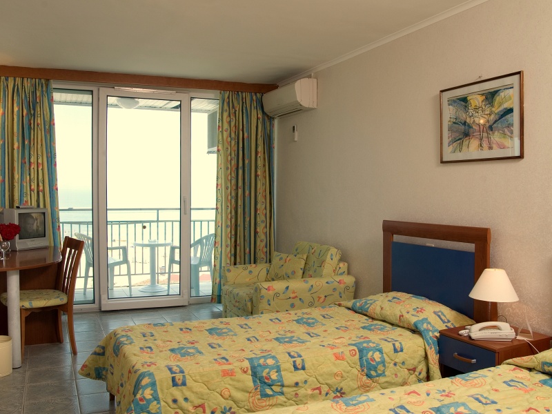 - Studio (25 кв.м.) - двуспальная кровать/две отдельные кровати, кондиционер, TV SAT, телефон, кухонный бокс, мини-бар, балкон, ванна, душ, фен, сушилка для белья.