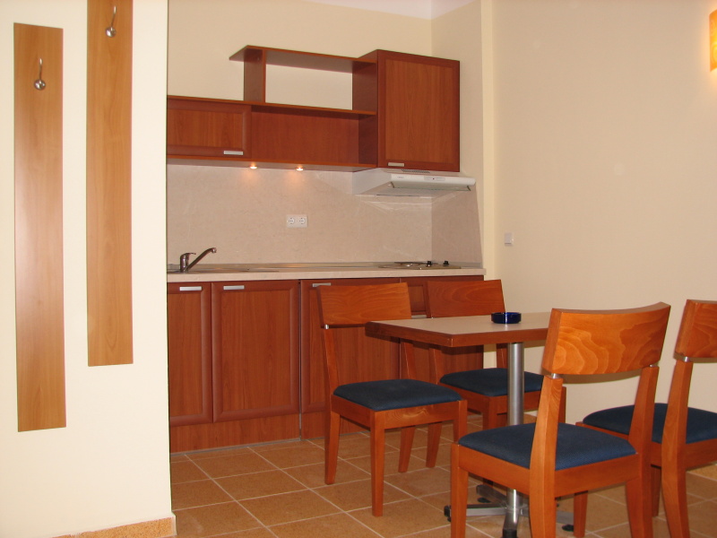 - Ap2pax (48кв.м) – спальня, гостиная (межкомнатная дверь), двуспальная кровать/две отдельные кровати, кондиционер, TV SAT, телефон, кухонный блок, холодильник, доступ в интернет, балкон, ванна/душ, фен, сушилка для белья.