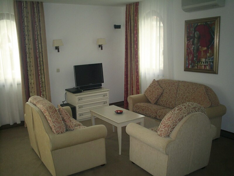 - Villas3bedrooms (115кв.м) – 3 спальни, гостиная с мягкой мебелью, двуспальная кровать, доп. место - диван-кровать, кондиционер, камин, TV SAT, DVD, CD player, телефон, доступ в интернет, мини-бар, сейф, кухня, балкон, ванна, душ, фен.