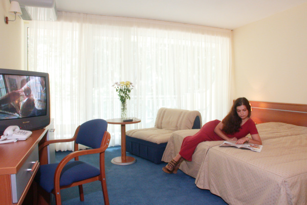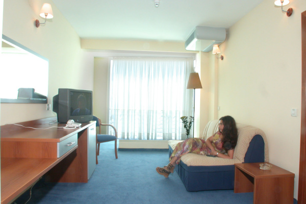 - Dbl (22 кв.м.) - две отдельные кровати, вид на море/вид на парк, кондиционер, TV SAT, телефон, холодильник, балкон, душ, фен.