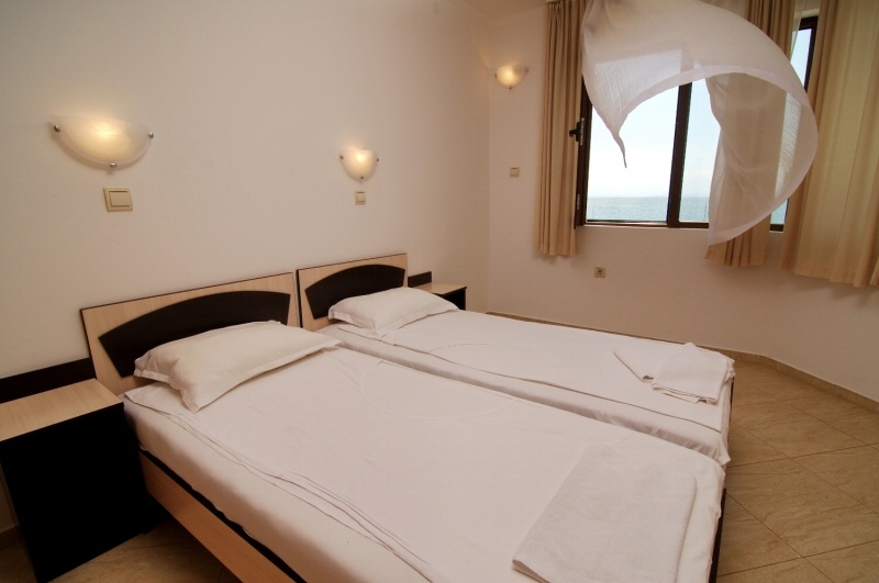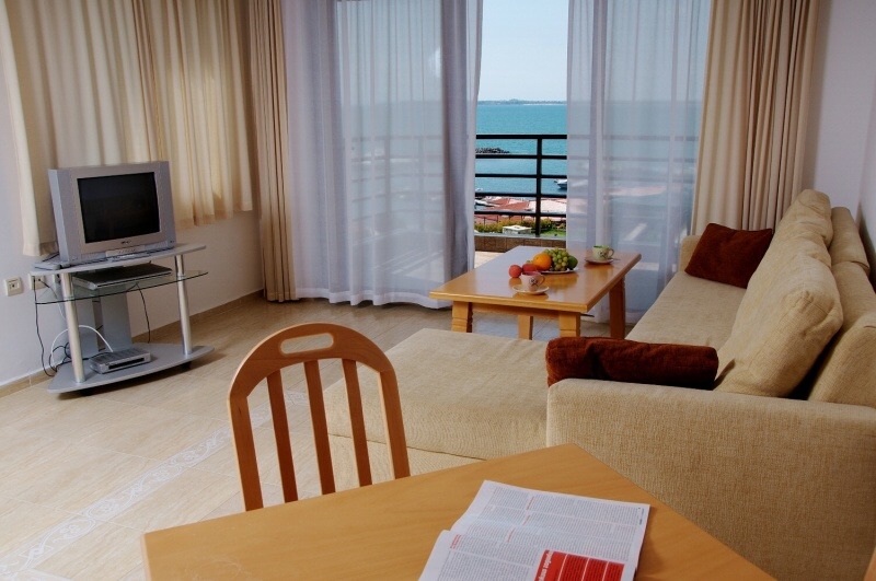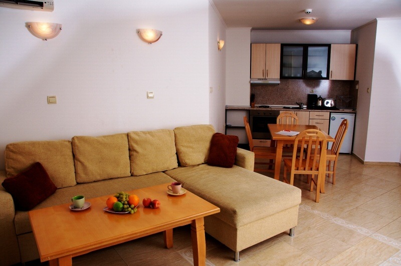 - Ap2pax (55 кв.м.) – спальня, гостиная с мягкой мебелью (межкомнатная дверь), двуспальная кровать/две отдельные кровати, доп. место - диван-кровать, кондиционер, TV SAT, кухонный бокс (электропечь, духовка, микроволновая печь, электрочайник, кофеварка, тостер), холодильник, доступ в интернет, балкон, душ, косметический набор в ванной, сушилка для белья, гладильная доска, утюг, пол – плитка.
