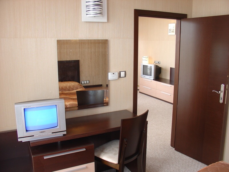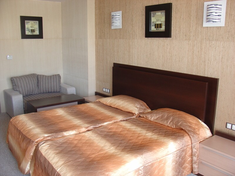 - Ap2pax (40 кв.м.) – спальня, гостиная с мягкой мебелью (межкомнатная дверь), двуспальная кровать, доп. место - диван-кровать, кондиционер, TV SAT, телефон, мини-бар, сейф (доп. оплата), доступ в интернет, балкон, душ, фен, халат/тапочки (бесплатно), косметический набор в ванной, пол – ковролин.