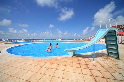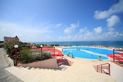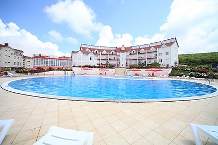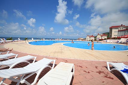 - Бассейны: открытый 550 м, не подогреваемый, вода пресная, детское отделение, горки, пользование бассейном входит в стоимость
