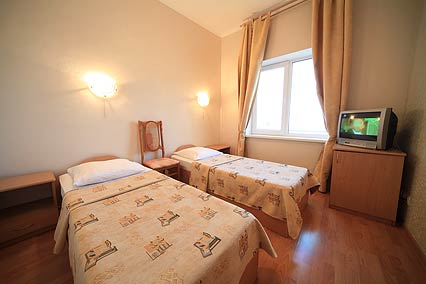 - односпальная кровать, прикроватные тумбочки, шкаф, журнальный столик, стулья, вешалка, зеркало, система общего кондиционирования, телевизор, холодильник, санузел с душем (поддон), фен, туалетные принадлежности, уборка номера ежедневно, смена постельного белья раз в 4 дня, смена полотенец раз в 4 дня