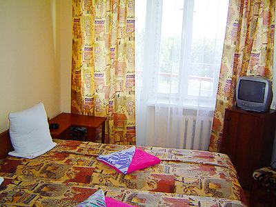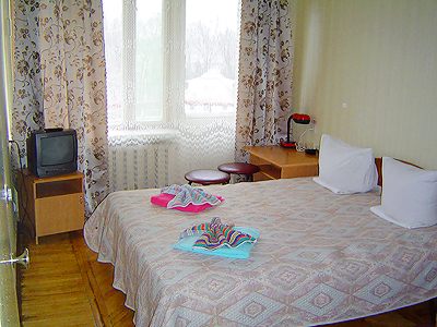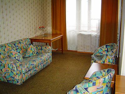 - 2-местный 2-комнатный "полулюкс"(40 м2). В номере совмещенный санузел с ванной. В номере: двуспальная кровать, набор мебели, ТВ, холодильник, телефон, балкон.