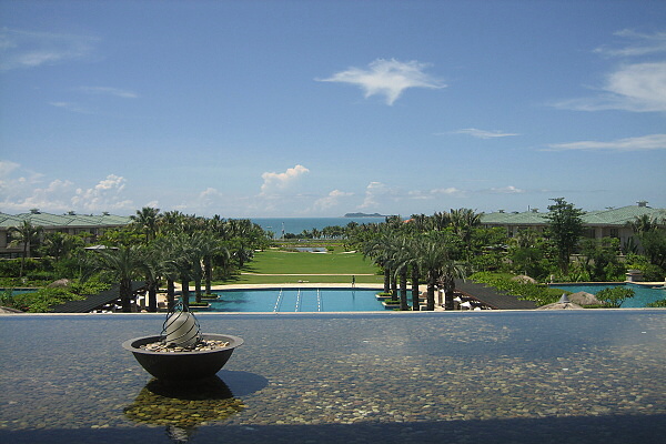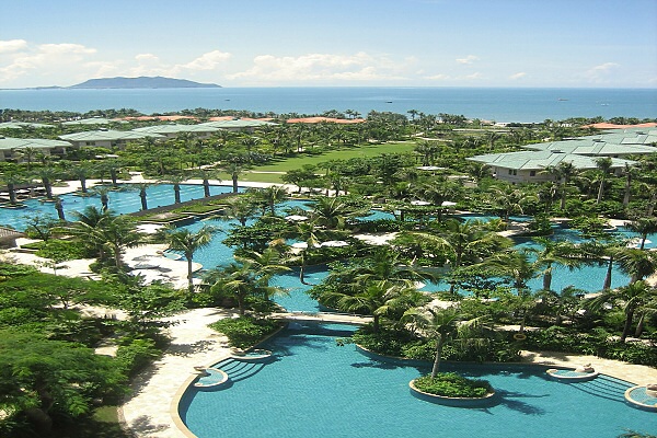 в самом центре бухты Санья. Находится в 6 км от аэропорта «Феникс», в 8 км от г. Санья.