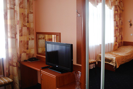 - 2-х местный стандарт 1 категории, корпус 1: душ, санузел, ТВ, холодильник, фен, сейф, сплит-система, лоджия, 2-е раздельные или 1 двуспальная кровати (2+1)