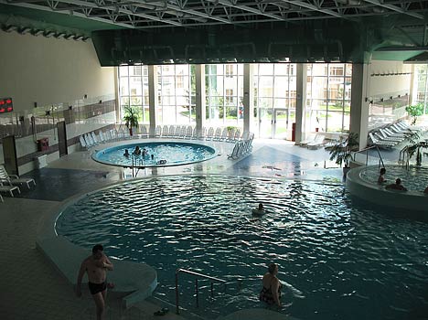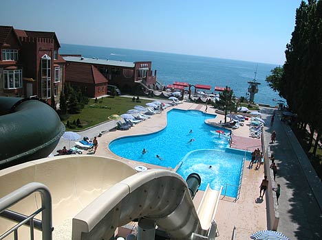 На территории комплекса распложен крытый бассейн с пресной водой и неглубоким детским отделением – он работает круглогодично, также есть открытый бассейн, который работает только в сезон – в нём также предусмотрен «лягушатник». Посещение бассейнов входит в комплекс оплаченных постояльцами услуг. В тёплое время года отдыхающие могут посещать собственный пляж оздоровительного комплекса, оснащённого такими пляжными принадлежностями как шезлонги и теневые зонты.