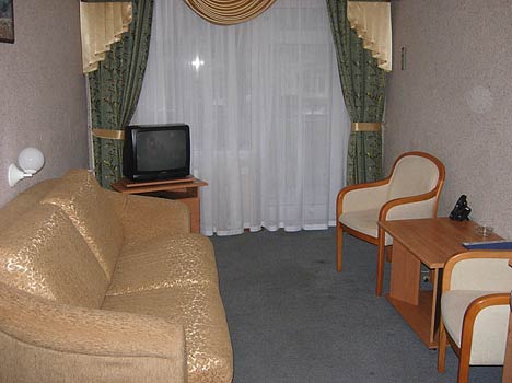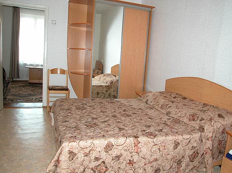 - 2-местные "Апартаменты" с лоджией, состоящие из спальной комнаты, гостиной, кухни. Все номера оборудованы холодильниками, телевизорами, сплит-системами, необходимой бытовой техникой, сейфами. Предусмотрено дополнительное место.