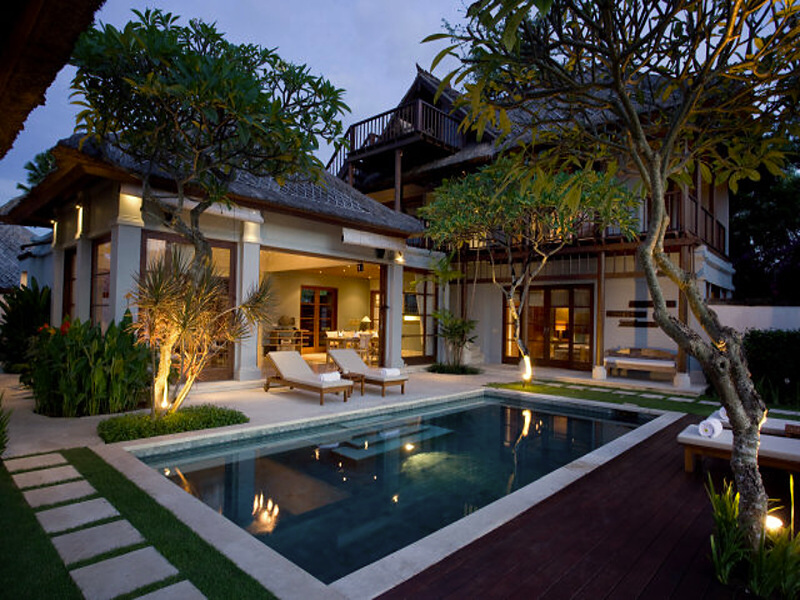 Концепция дизайна вилл - это сочетание современного стиля с балийским декором: мебелью из тикового дерева, традиционными статуэтками и балинезийским орнаментом.