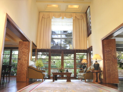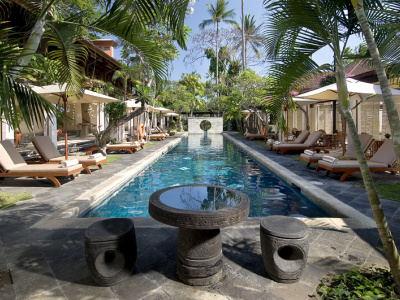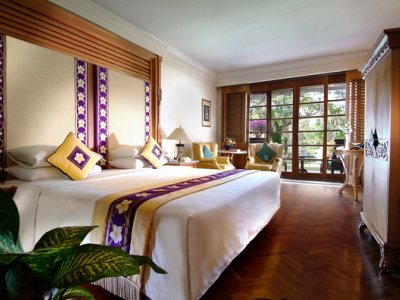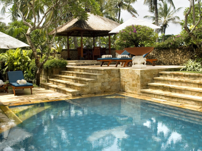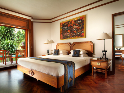 - 1 NUSA DUA SUITE - двухуровневый номер: на первом этаже - гостиная, терраса с выходом в сад и частному бассейну, на втором этаже - 2 спальни, 2 ванных комнаты. Гости пользуются преимуществами "Palace Club".